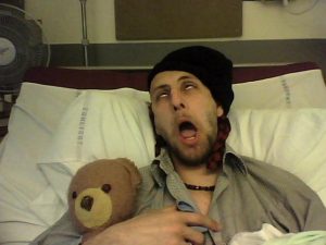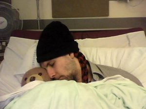 Not a lot of sleep last night as the old dudes decided to have a 5 hour coughing contest while the IV machines laid down some manic Old School House beats. Special mention goes to Reggie ‘The Sub-Woofer’ Perrin who managed to hold a hard-core wheezing bass-line all the way through. Resplect, homdawg.